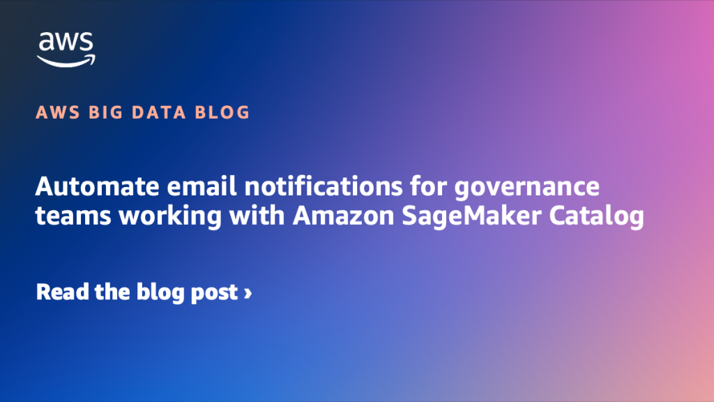 In this post, we show you how to create custom notifications for events occurring in SageMaker Catalog using Amazon EventBridge, AWS Lambda, and Amazon SNS. You can expand this solution to automatically integrate SageMaker Catalog with in-house enterprise workflow tools like ServiceNow and Helix.