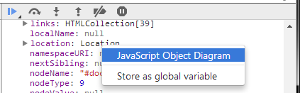- Now set a breakpoint. When it is hit go to Sources Tab > Scope Variables section, choose a variable you want to diagram and right click on it's value to JavaScript Object Diagram menu item and you will see the diagram (see screenshot above).