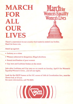 I feel fortunate to have been able to attend two historic gatherings in our nation's capital -- NOW's March for Women's Lives in 1989, which took place in the shadow of Missouri's anti-abortion laws pending before the Supreme Court, and the Bush administration siding with anti-choice lunatics, explicitly urging reversal of Roe v. Wade, as well as the National March on Washington for Lesbian and Gay Rights in 1993 -- both of which were obviously more serious events than this one.