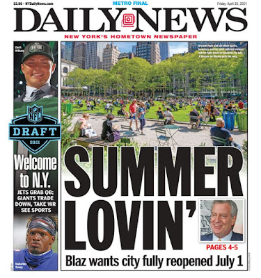 The Daily News: De Blasio envisions ‘Summer of New York City’ with full reopening from Covid lockdowns on July 1