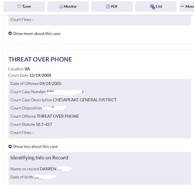 With thanks to a sleuth-y reader, who tells me Darren has had a whopping nine run-ins with the law, including this. What were the odds that someone who would compose a letter like that would go on to be charged with making a "threat over phone"? (LOL) Sounds like I got off easy!