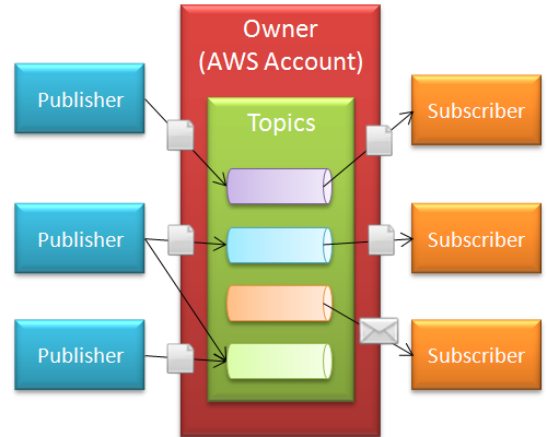 Publishers send messages to topics. SNS matches the topic with the list of subscribers interested in the topic, and delivers the message to each and every one of them. Here’s how it all fits together: