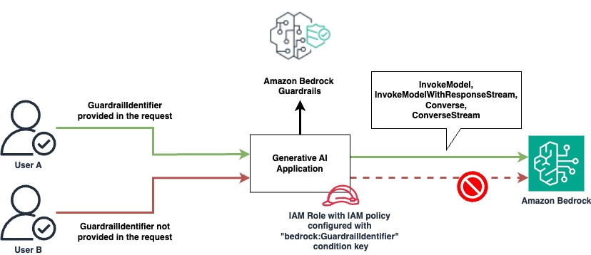 If the guardrail configured in your IAM policy doesn’t match the guardrail specified in the request, the request will be rejected with an access denied exception, enforcing compliance with organizational policies.