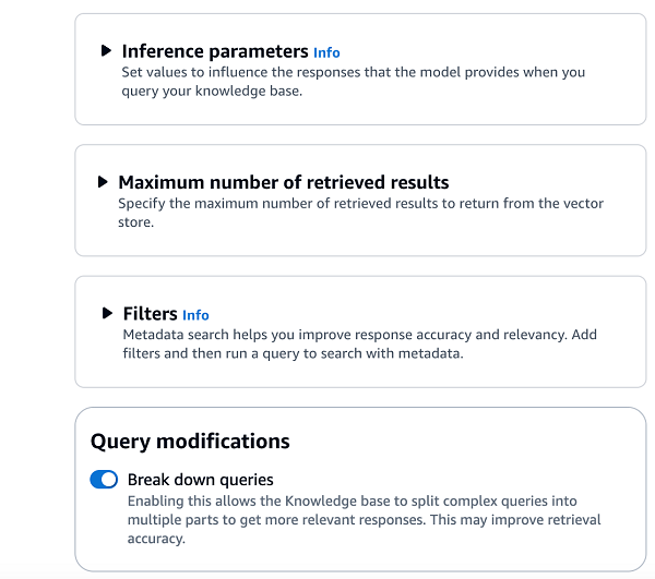 In this section we will go through the new features provided by Amazon Bedrock Knowledge Bases to improve the accuracy of generated responses to user query.