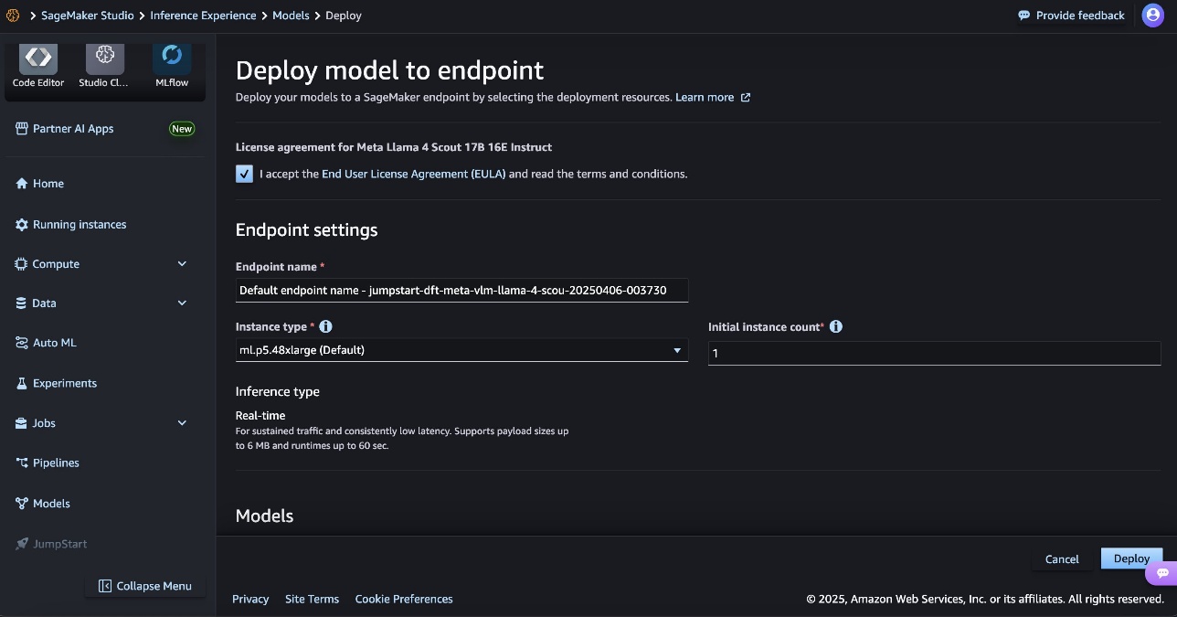 Deploy Llama 4 models for inference through the SageMaker JumpStart UI