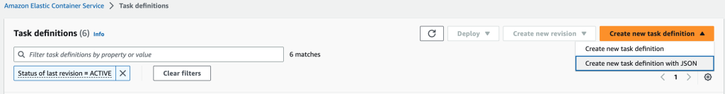 - On the Create new task definition menu, choose Create new task definition with JSON.