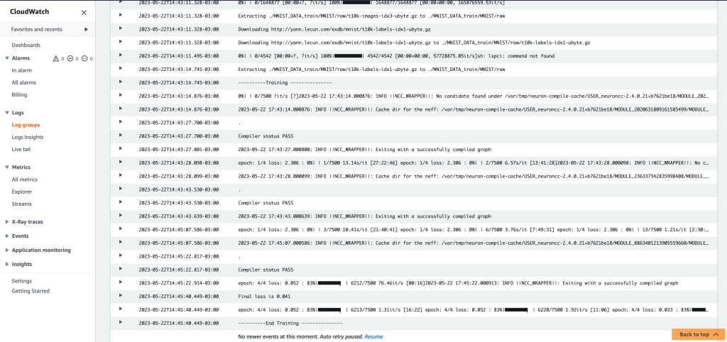 You can also check the details of the training job through the Amazon CloudWatch log group.
