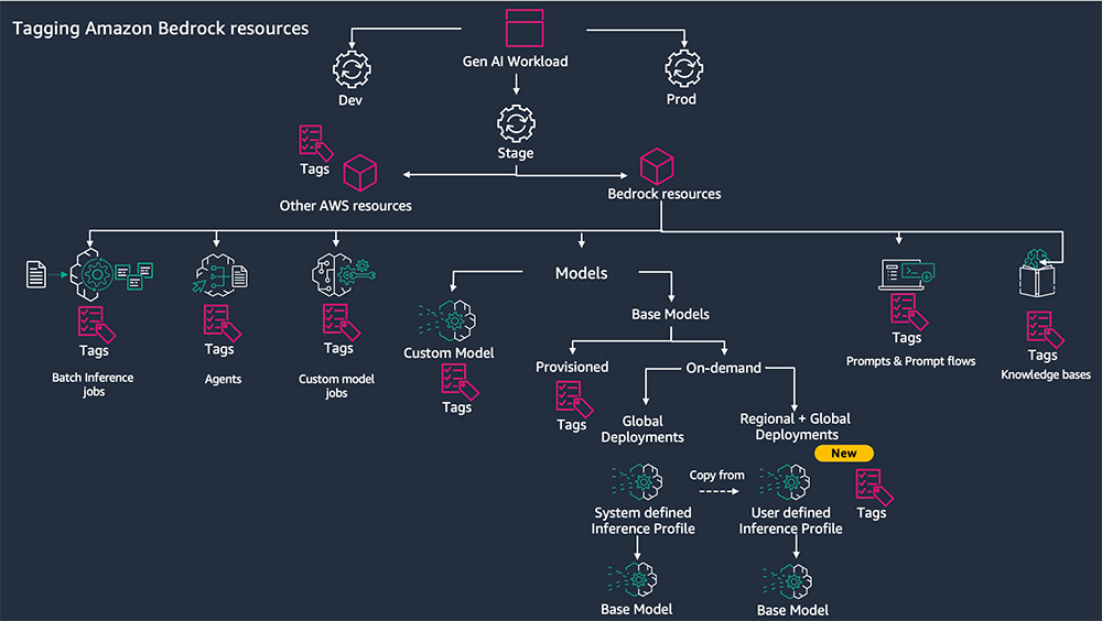 Amazon Bedrock recently introduced cross-region inference, enabling automatic routing of inference requests across AWS Regions. This feature uses system-defined inference profiles (predefined by Amazon Bedrock), which configure different model Amazon Resource Names (ARNs) from various Regions and unify them under a single model identifier (both model ID and ARN). While this enhances flexibility in model usage, it doesn’t support attaching custom tags for tracking, managing, and controlling costs across workloads and tenants.