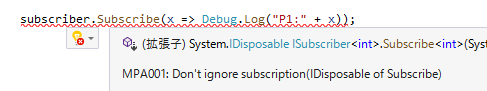 subscriber.Subscribe(x => Debug.Log("S1:" + x)).AddTo(d);