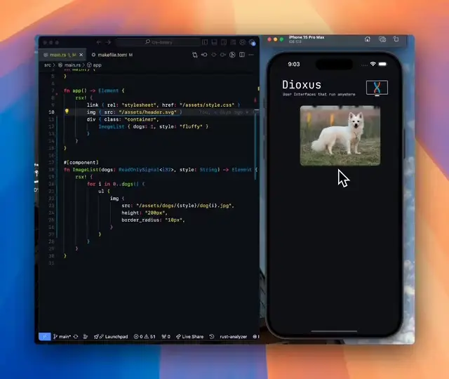 Build for web, desktop, and mobile, and more with a single codebase. Zero-config setup, integrated hot-reloading, and signals-based state management. Add backend functionality with Server Functions and bundle with our CLI.