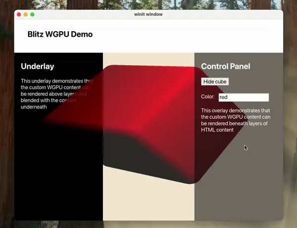 Build your own renderer, or use a community renderer like Freya. Use our modular components like RSX, VirtualDom, Blitz, Taffy, and Subsecond.