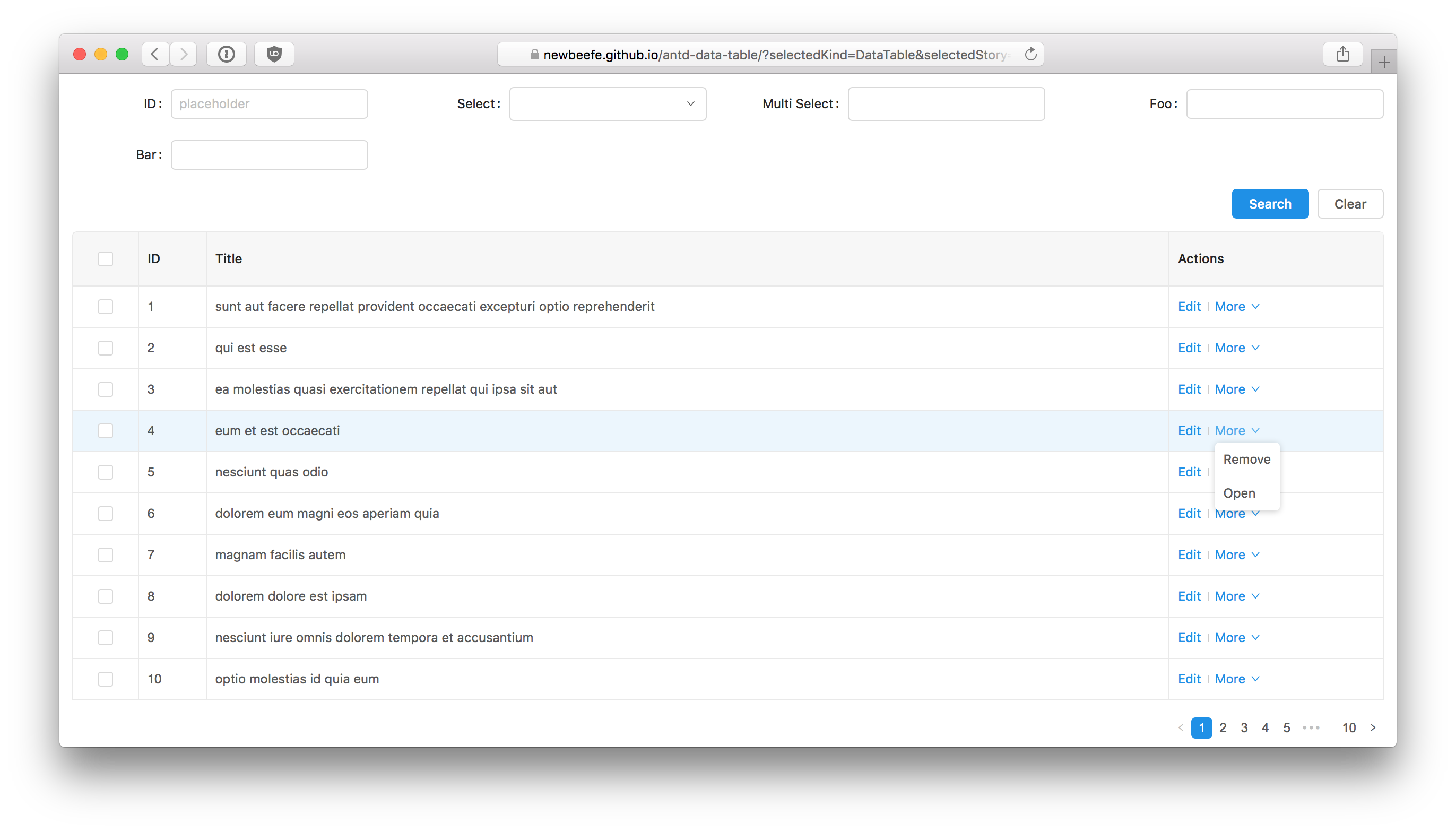, mountNode)We usually need to write some action buttons for operating a specific record. antd-data-table made it super easy: