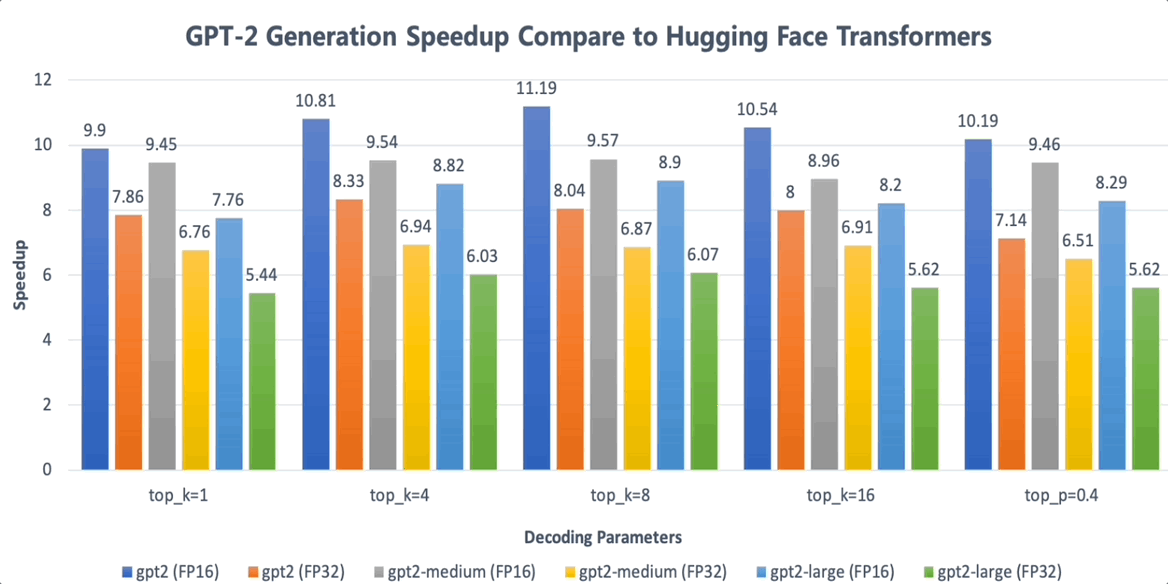 use_faster=True)简单地在generate()API上打开use_faster=True选项,轻松在Transformer、GPT、BART、PLATO、UniLM等生成式预训练模型上获得5倍以上GPU加速,更多使用说明可参考FasterGeneration文档。