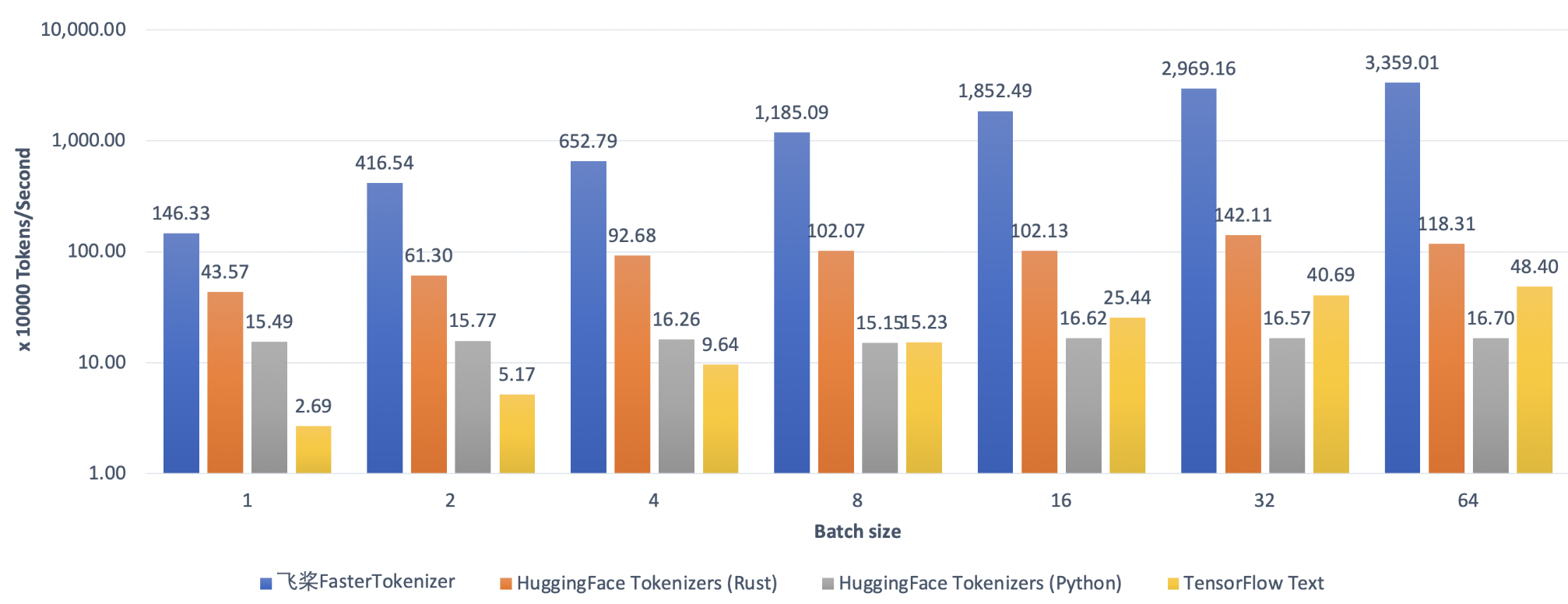 AutoTokenizer.from_pretrained("ernie-3.0-medium-zh", use_faster=True)为了实现更极致的模型部署性能,安装FastTokenizers后只需在AutoTokenizer API上打开 use_faster=True选项,��可调用C++实现的高性能分词算子,轻松获得超Python百余倍的文本处理加速,更多使用说明可参考FasterTokenizer文档。