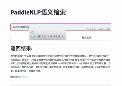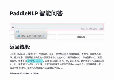 model = AutoModelForQuestionAnswering.from_pretrained('ernie-3.0-medium-zh')覆盖从学术到产业的NLP应用示例,涵盖NLP基础技术、NLP系统应用以及拓展应用。全面基于飞桨核心框架2.0全新API体系开发,为开发者提供飞桨文本领域的最佳实践。