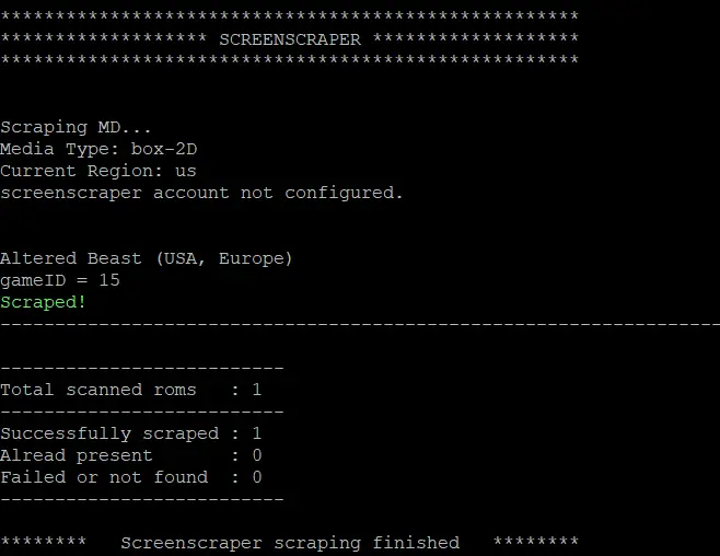 Having a screenscraper account set allows faster scraping and less errors. You can set it by editing the file sdcard/System/etc/scraper.json then fill the following fields: screenscraper_username & screenscraper_password