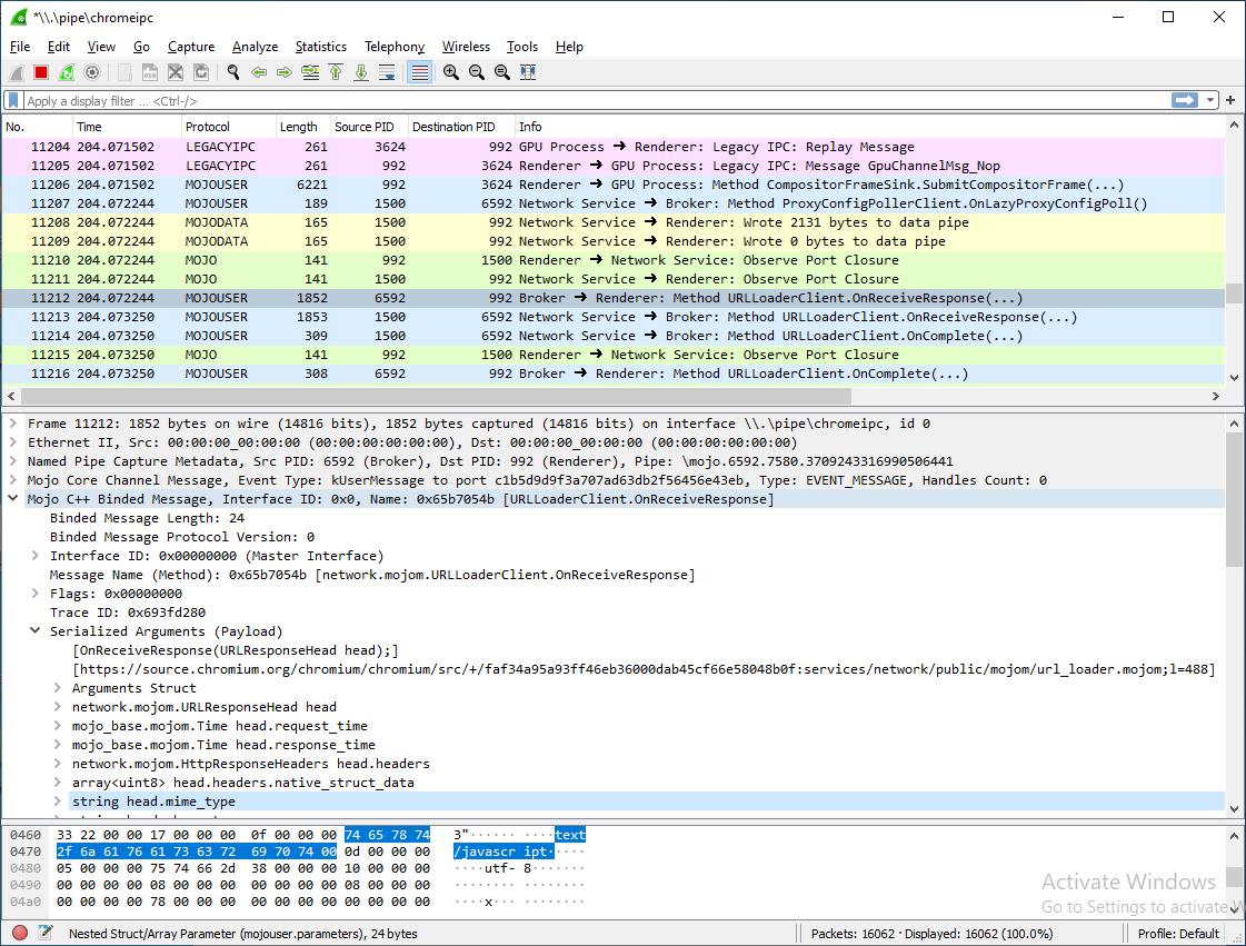 This utility helps you explore what Chrome processes are saying to each other under the hood in real-time, using Wireshark.