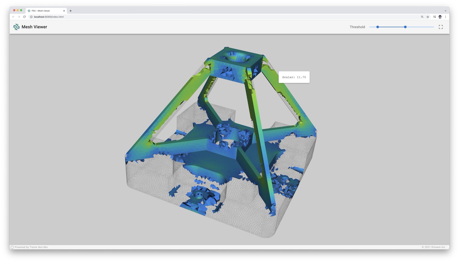 With best-in-class VTK and ParaView platforms at its core, trame provides complete control of 3D visualizations and data movements. Developers benefit from a write-once environment while trame simply exposes both local and remote rendering through a single method.