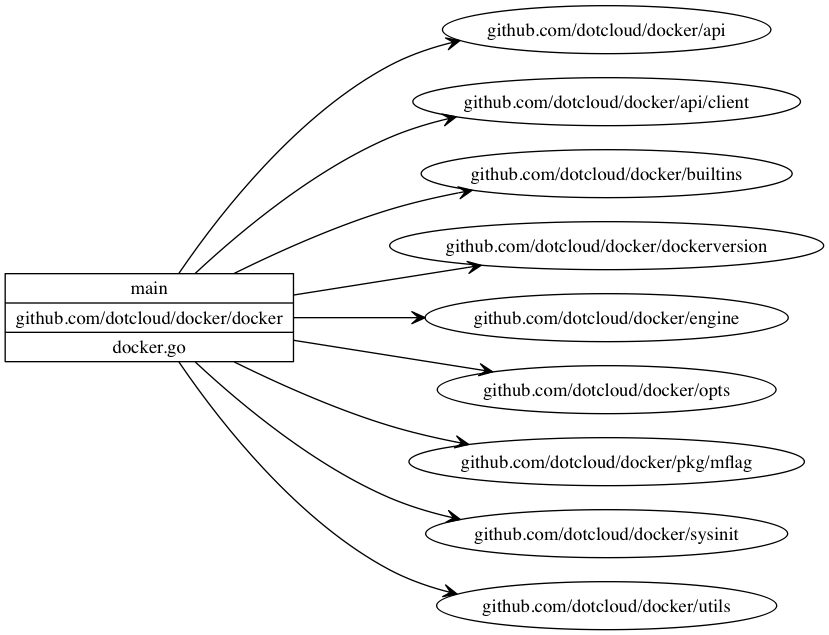 goviz -i github.com/dotcloud/docker/docker -s github.com/dotcloud/docker -d 1| dot -Tpng -o docker1.png