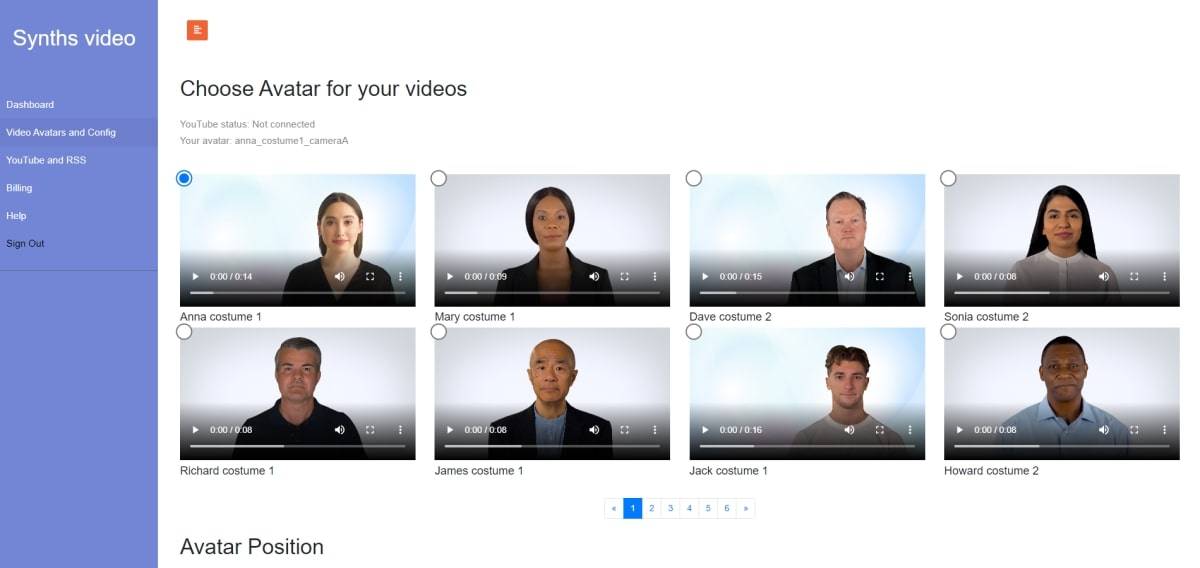 - Select your AI presenter first (Synthesia provides more than 40 avatars for your AI films; alternatively, you can make your own avatar).