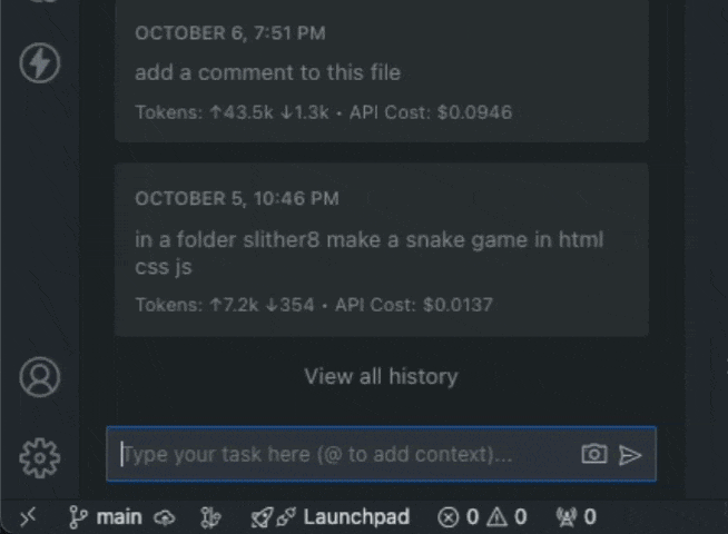 The extension also keeps track of total tokens and API usage cost for the entire task loop and individual requests, keeping you informed of spend every step of the way.