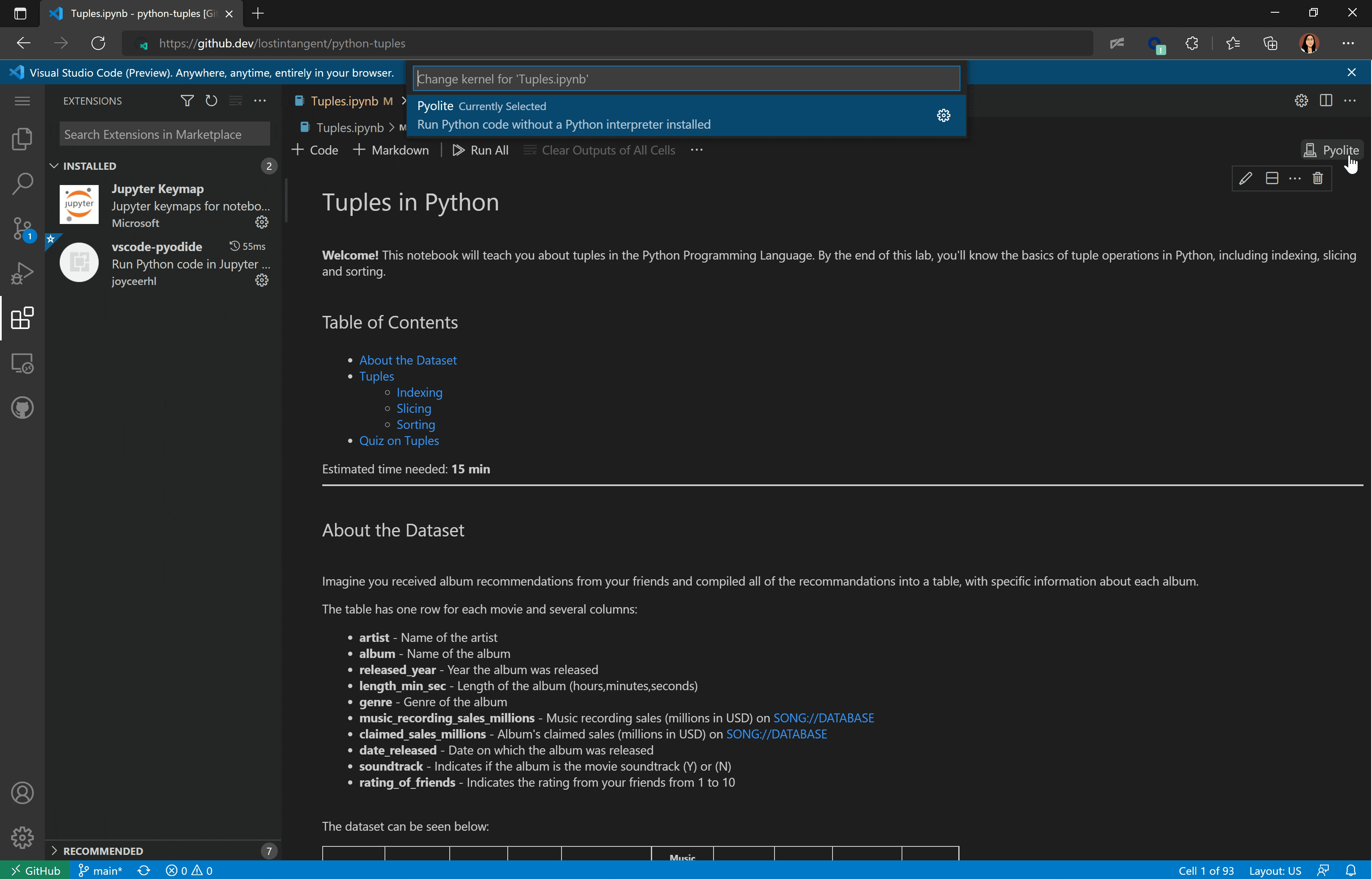 Python kernel for Visual Studio Code notebooks based on JupyterLite, Pyodide, the Jupyter extension for VS Code.