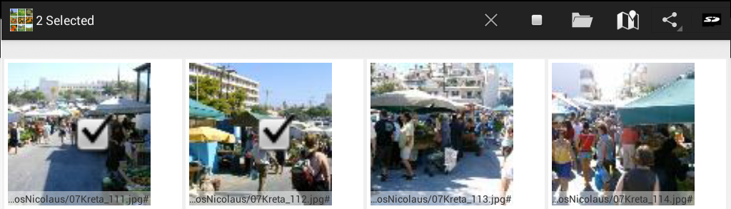 - file operations copy, move, delete, rename, share, show in map, set geo, set tags (keywords), edit photo properties (exif)