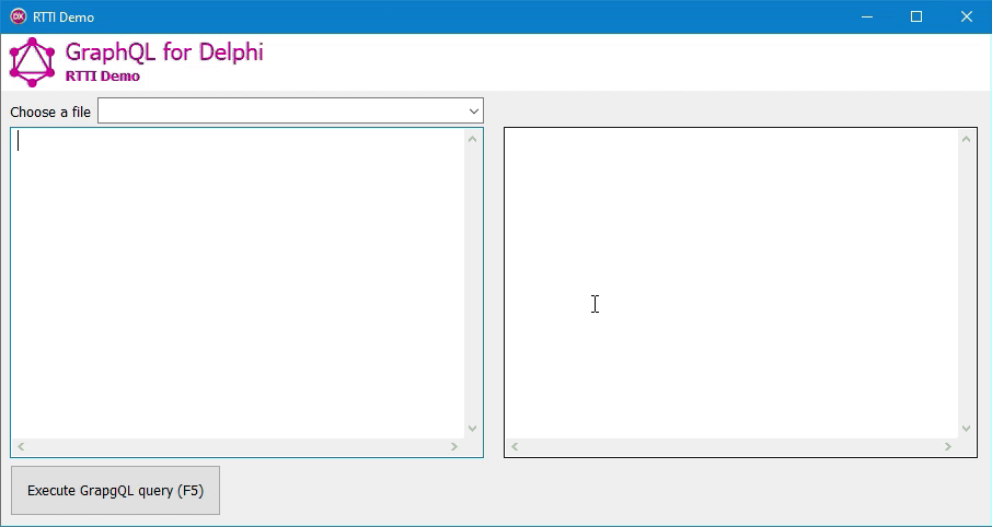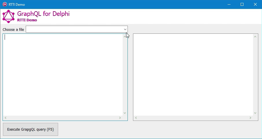 FQuery.RegisterResolver(TGraphQLRttiResolver.Create(TTestApi, True));The RegisterResolver method can add a resolver (any class that implements IGraphQLResolver) to the GraphQL engine. A resolver is a simple object that explains to GraphQL how to get the data from the API. You can build your own resolvers or use the resolvers build-in with the library.