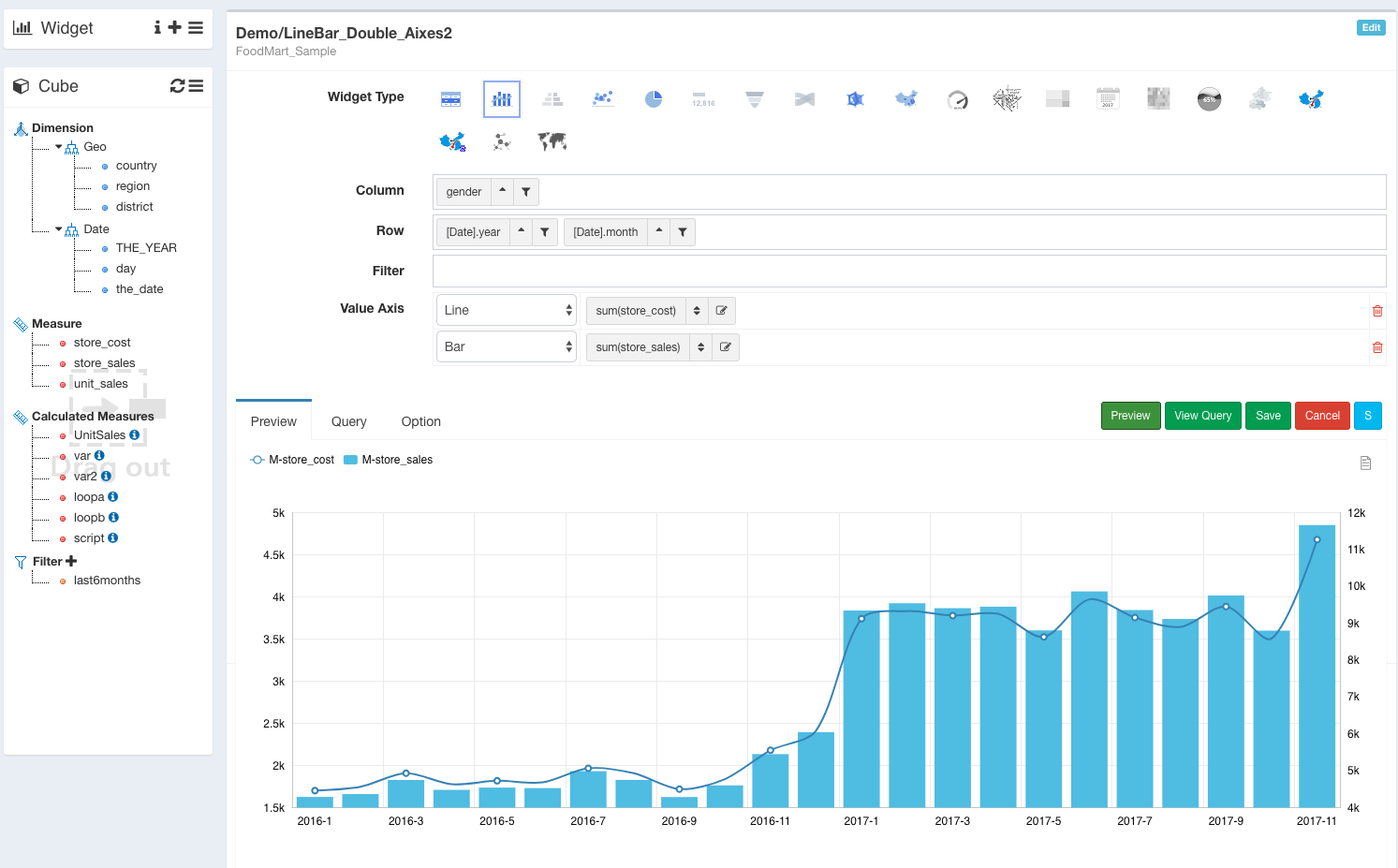- Lightweight architecture and concise source code, the entire project does not rely on any third-party multi-dimensional analysis tools, if you are struggling in Mondrain, CBoard could be a nice alternative for you.