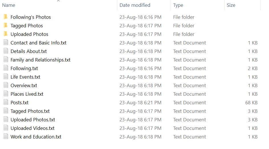 - friends list and their profile photos (including Followers, Following, Work Friends, College Friends etc)