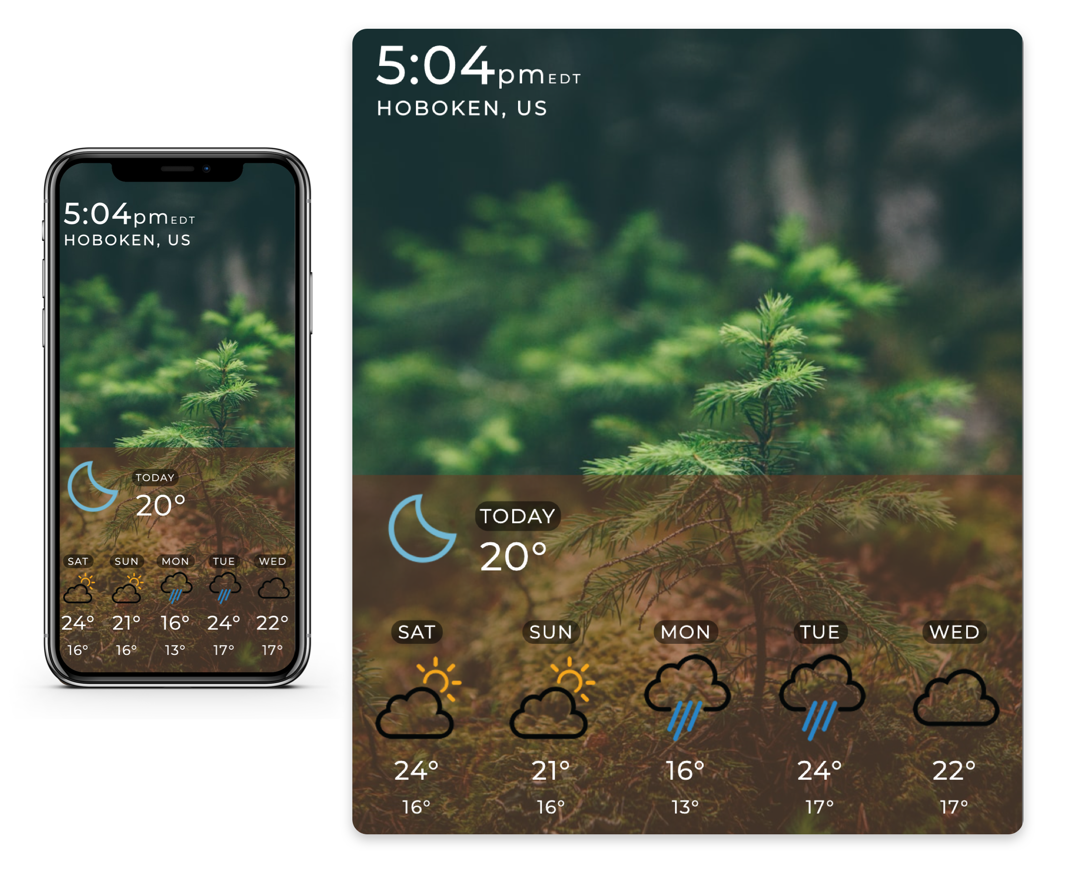 Weather App, which displays weather up to 5 days. It shows the maximum and the minimum temperature for the day.