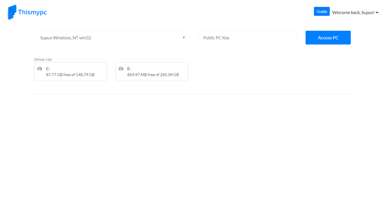 ThisMyPC provides a neat web interface that can be used for browsing your desktop drives from any device in your browser itself. With the help of NodeJs, the file details are displayed in JSON format that can then be easily displayed in web browsers.