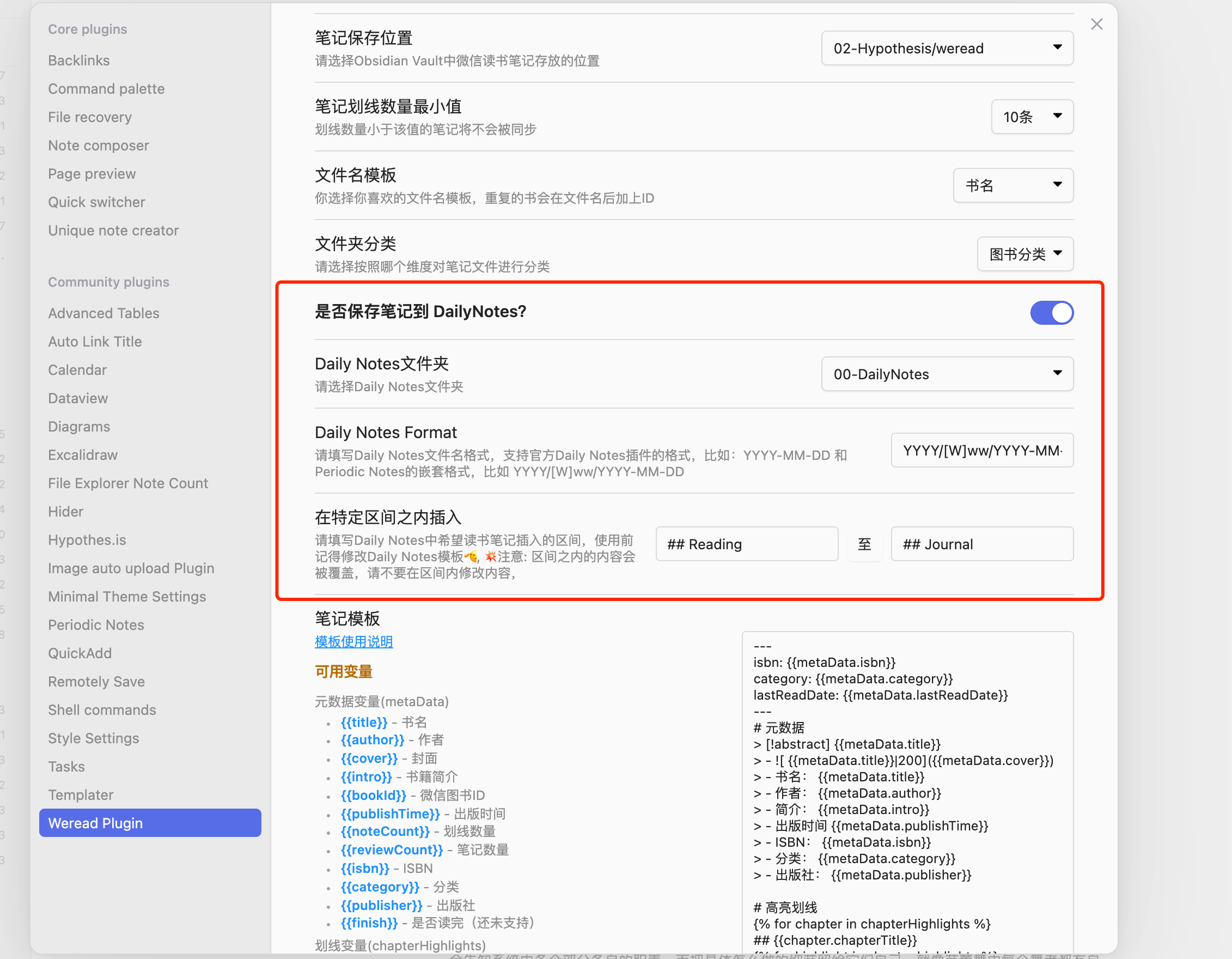 - 支持Daily Notes,将当日读书笔记同步至Daily Notes中,已经在0.4.0中支持