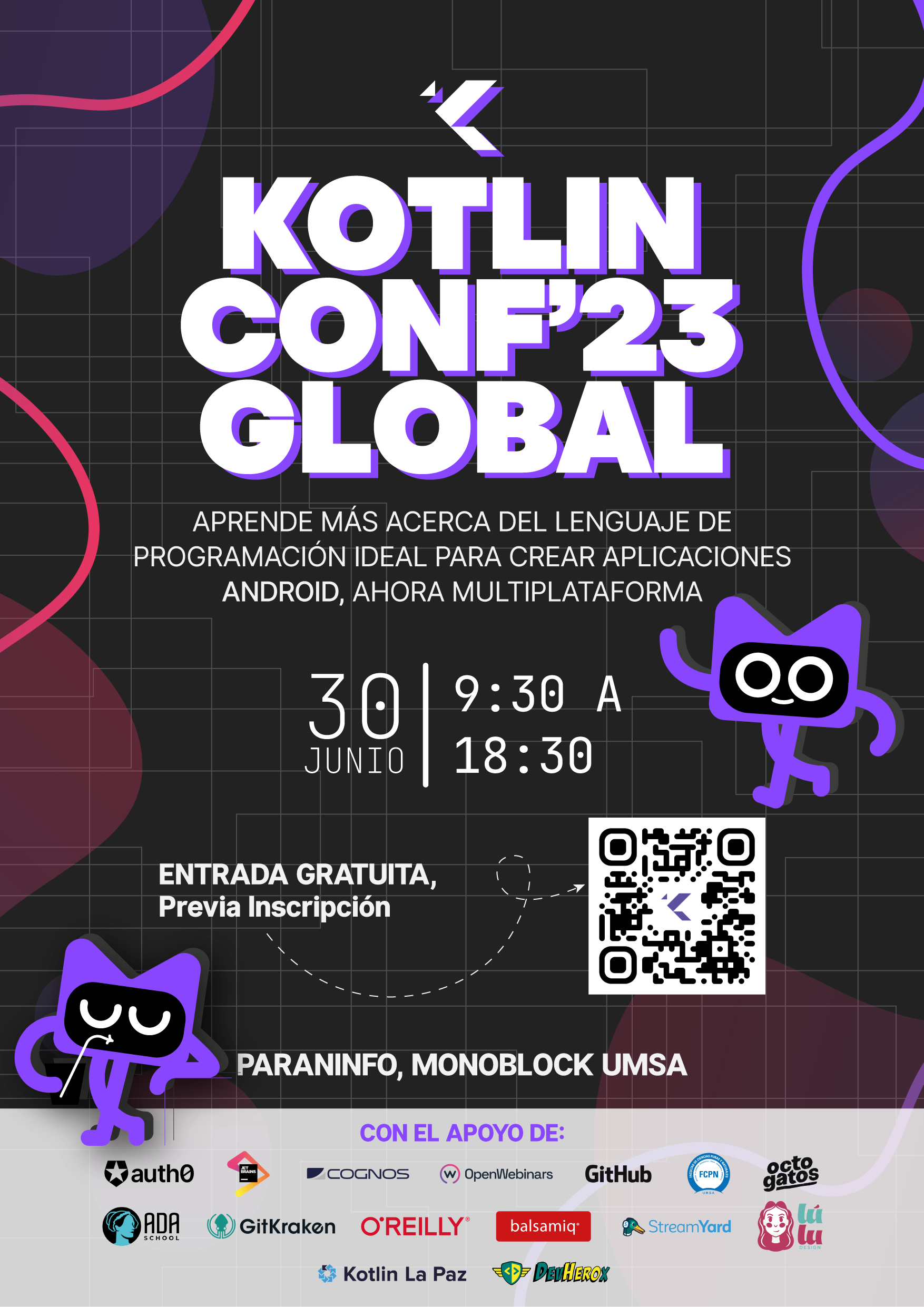 KotlinConf’23 Global La Paz is an in-person conference with live transmission with guests from different Latin American countries to share with us about Kotlin and the news that occurred in Kotlin Conf 2023.