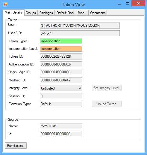 This GUI tool allows you to inspect and manipulate access tokens as well as do some basic tests of what you can do with that token (such as opening files). You can either look at the token for a specific process (or even open token handles inside those processes) or you can create ones using common APIs.