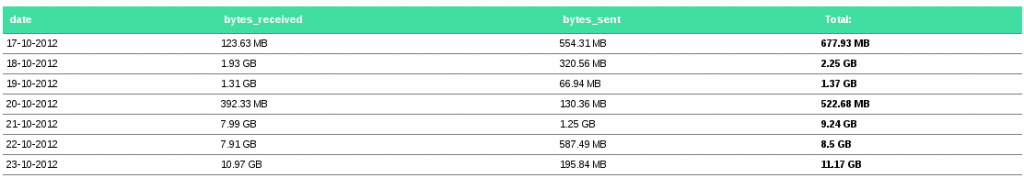 To help keep the peace with flatmates I started writing this application when I was back in Wellington to report on traffic usage, using a SQL DB of NetFlow records collected by the gateway. It got put on hold somewhat after moving to Auckland and getting a fat DSL plan from Snap NZ, however it recently got resurrected so that I could track down which host on my home server was chewing through the much smaller data cap at it’s new home at my parents place (sadly my full tower beauty wouldn’t fit into my plane luggage).