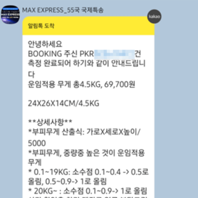 시장가보다 약 19% (미국 5KG ~105,000원 기준) 저렴한 운임