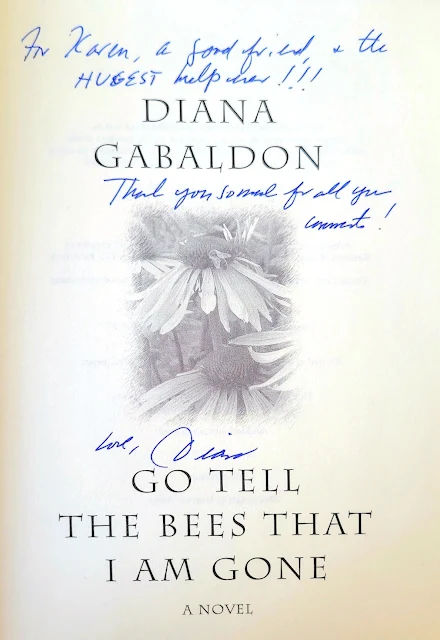 March 27 - Diana Gabaldon announces that she has FINISHED writing Book 9, GO TELL THE BEES THAT I AM GONE!!!