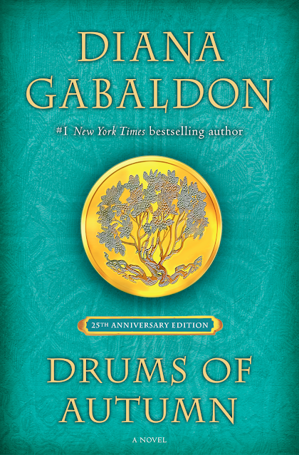 November 2 - The 25th Anniversary hardcover edition of DRUMS OF AUTUMN is now available! This book is similar to the Anniversary Editions of OUTLANDER, DRAGONFLY IN AMBER, and VOYAGER -- deluxe hardcover editions, complete with "faux-leather" binding and a ribbon bookmark -- and I think DRUMS will be a terrific addition to the matched set!